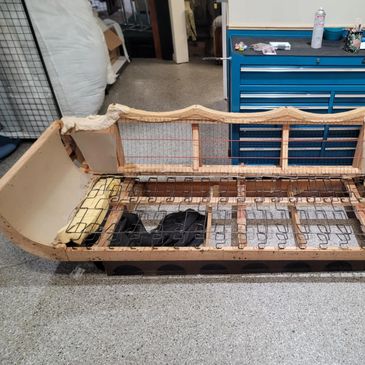 For seating that has lost its support, we specialize in traditional 8‑way hand‑tied spring reties—the gold standard of upholstery craftsmanship. This meticulous method creates even tension, long‑lasting comfort, and a resilient foundation that machine‑tied systems simply can’t match. Whether your springs are broken, slipping, or completely detached, we rebuild the support system from the inside out, preserving the integrity and feel of the piece.